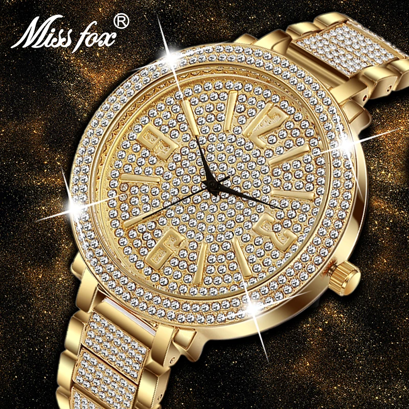 Missfox Big Face Watches For Women Fashion Japanese Quartz Movement Full Diamond Watch Female Large Dial Arabic Numeral Watches Quartz Wristwatches Aliexpress